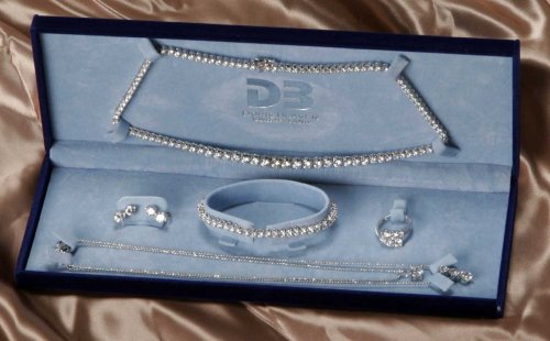 スイスの新鋭デザイナー『ドリスブラザー』ブランド。ドリスバラザーの<プロフィール>1964年スイスの首都ベルンで生まれる。ロンドンで学び、スイスの時計の街ビエンヌで、メリガ社のデザイナーとして時計のデザインを主に手がける。1998年より当社のデザインも担当して、OME時計のデザインを中心に手がけ、1999年秋にインゴット時計のデザインを制作。2000年からは、ジュエリーのデザインも手がけています。当社のシルバージュエリーのデザインもドリスバラザーの企画したものです。ジルコニアと呼ばれる人工ダイヤで天然のダイヤモンドについで天然のルビーや天然のサファイアよりも光の屈折率が高いものです。Dカラーの無色透明ですから、より輝く色が美しいのです。そのデザインはテニスネックレスとも呼ばれ、有名なテニスプレーヤーがブレスレットとして着用し人気が出ました。最近では、マルチナ・ヒンギスが着用したため、注目されています。ジルコニアの数は、驚きの100石以上!!合計で20ct以上と贅沢に使用してあります。ネックレスのトップ部分はグラデーションになっていて、とてもお洒落に仕上げています。台の素材はスターリングシルバー、プラチナカラー仕上げとなっております。テニスブレスレットとリングは、ラウンドブリリアントカットされた輝きの美しいジルコニアを一粒一粒、一爪一爪、丁寧に丹念に仕上げたものです。チェーンがイタリア製のシルバー925の素材を使用した一粒石のペンダントとスリーストーンのペンダントをセットした豪華6点セット。