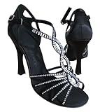 【HenryG Signature シリーズ】レディースラテンダンスシューズ セクシーな黒 サテンに白い石をはめ込んだハイクオリティーモデル
