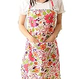 撥水 エプロン 花柄 フラワーネームタグ付 (ピンク)